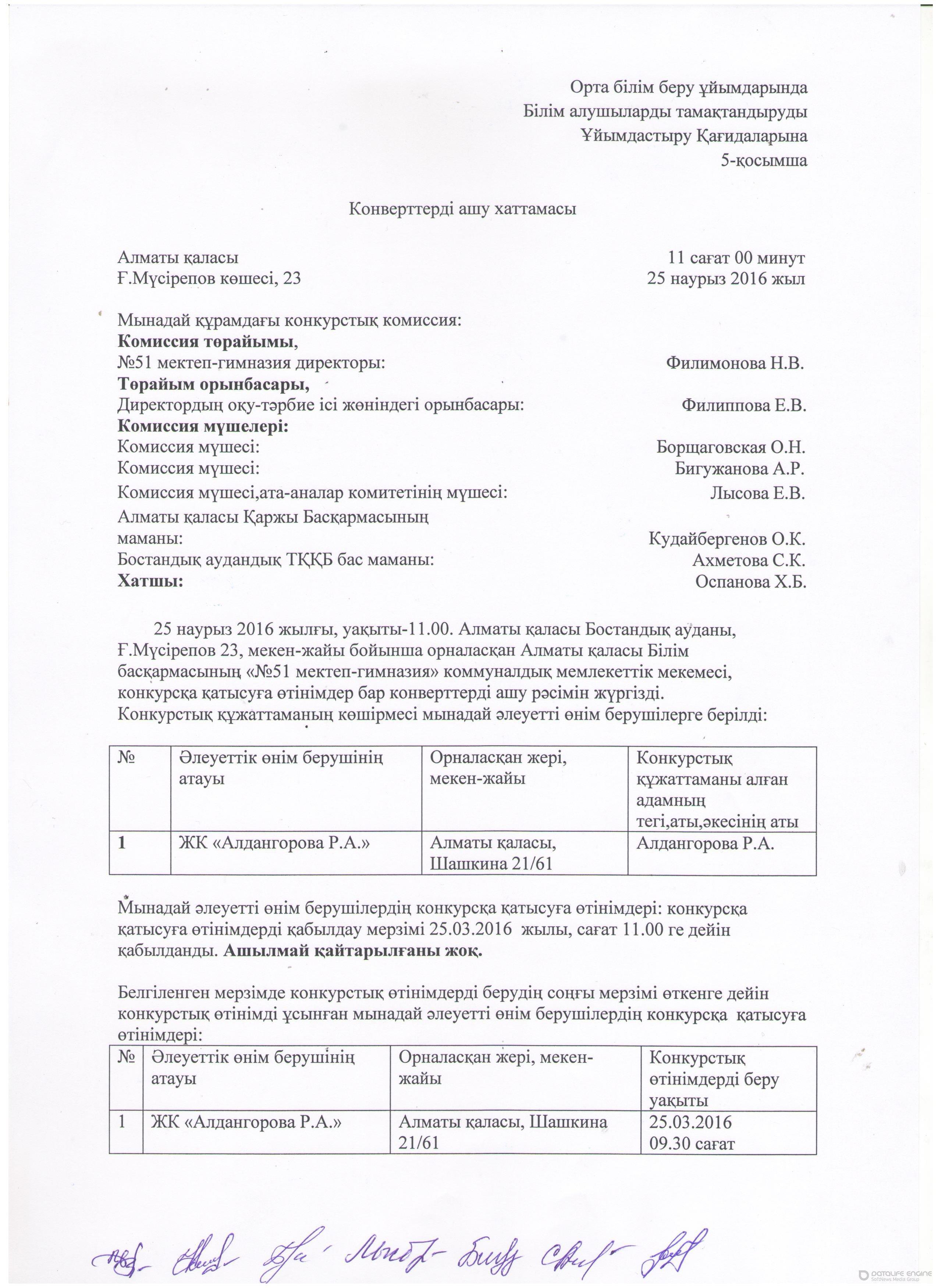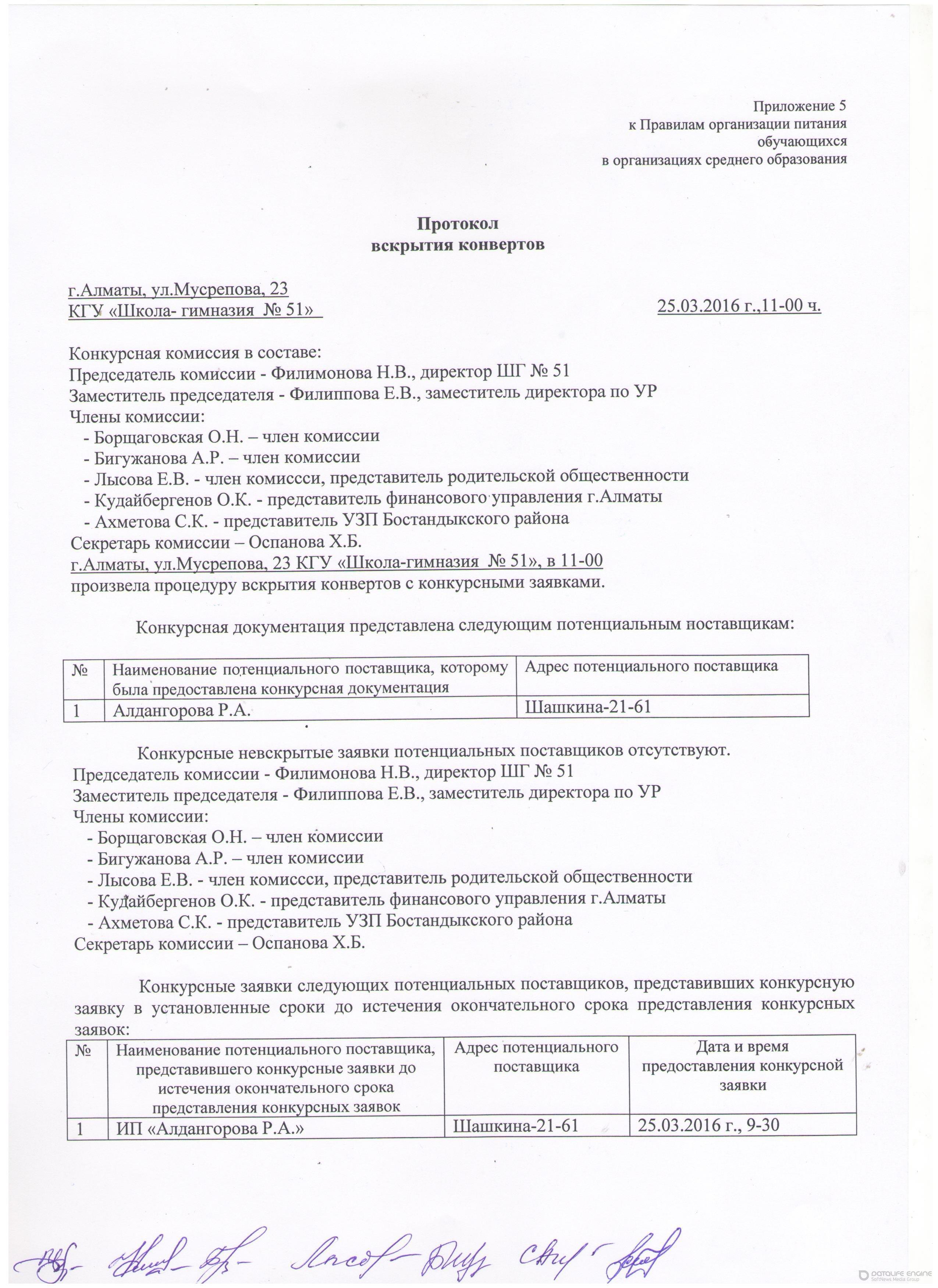 » Протокол вскрытия конвертов