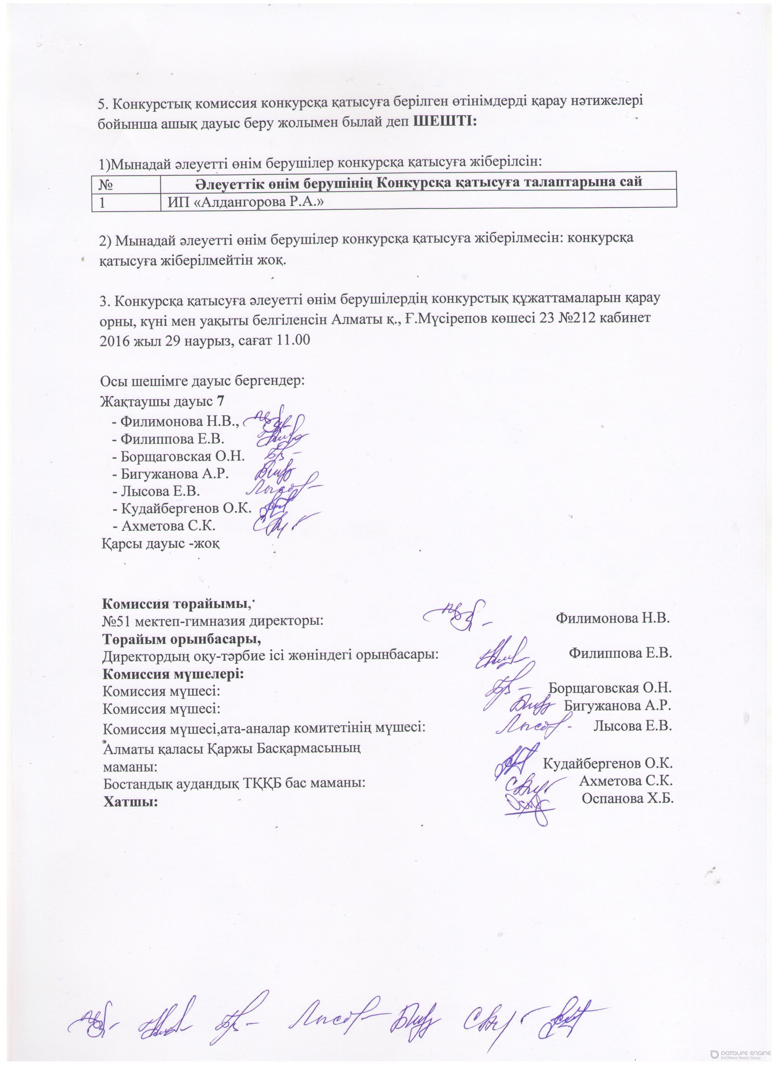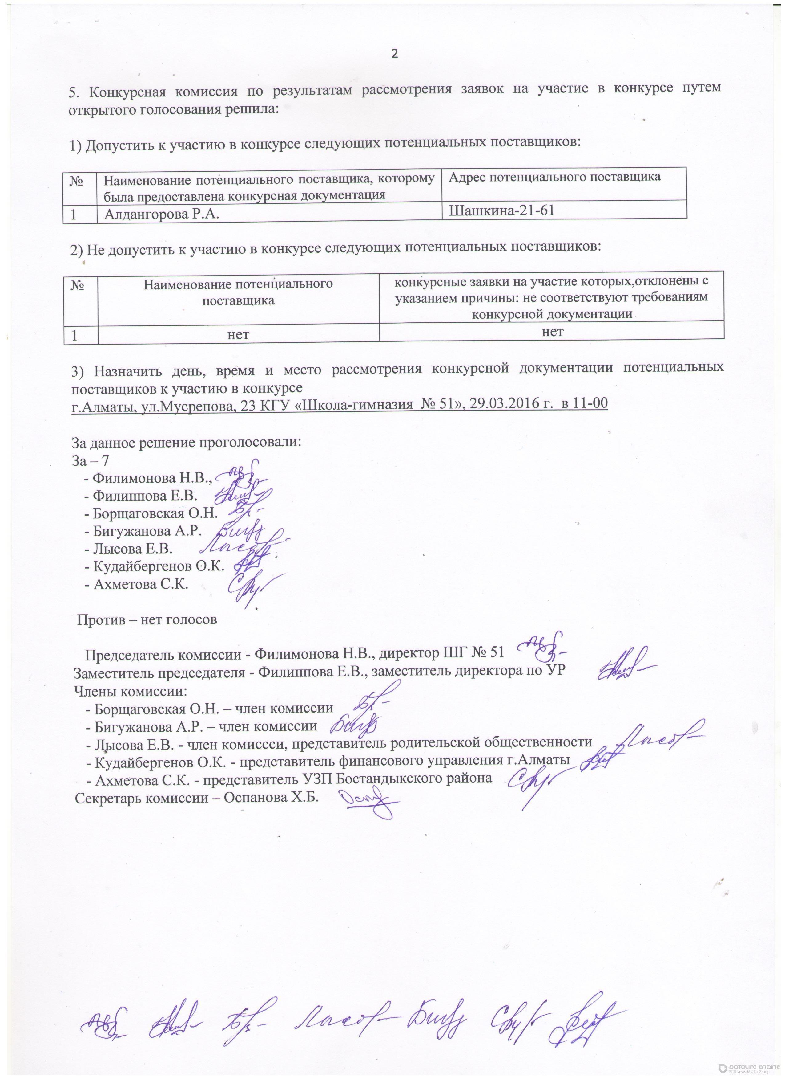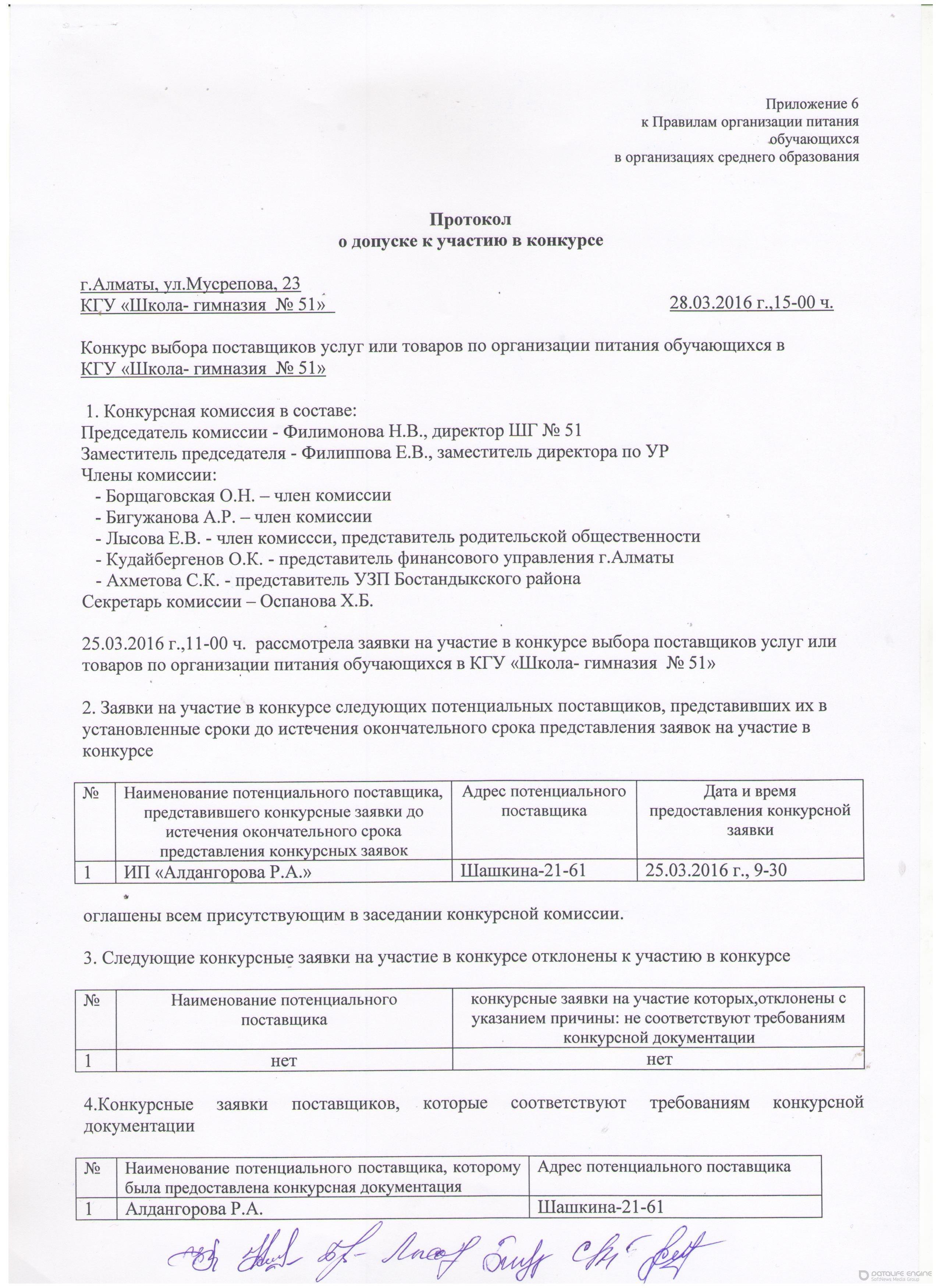 » Протокол о допуске к участию в конкурсе