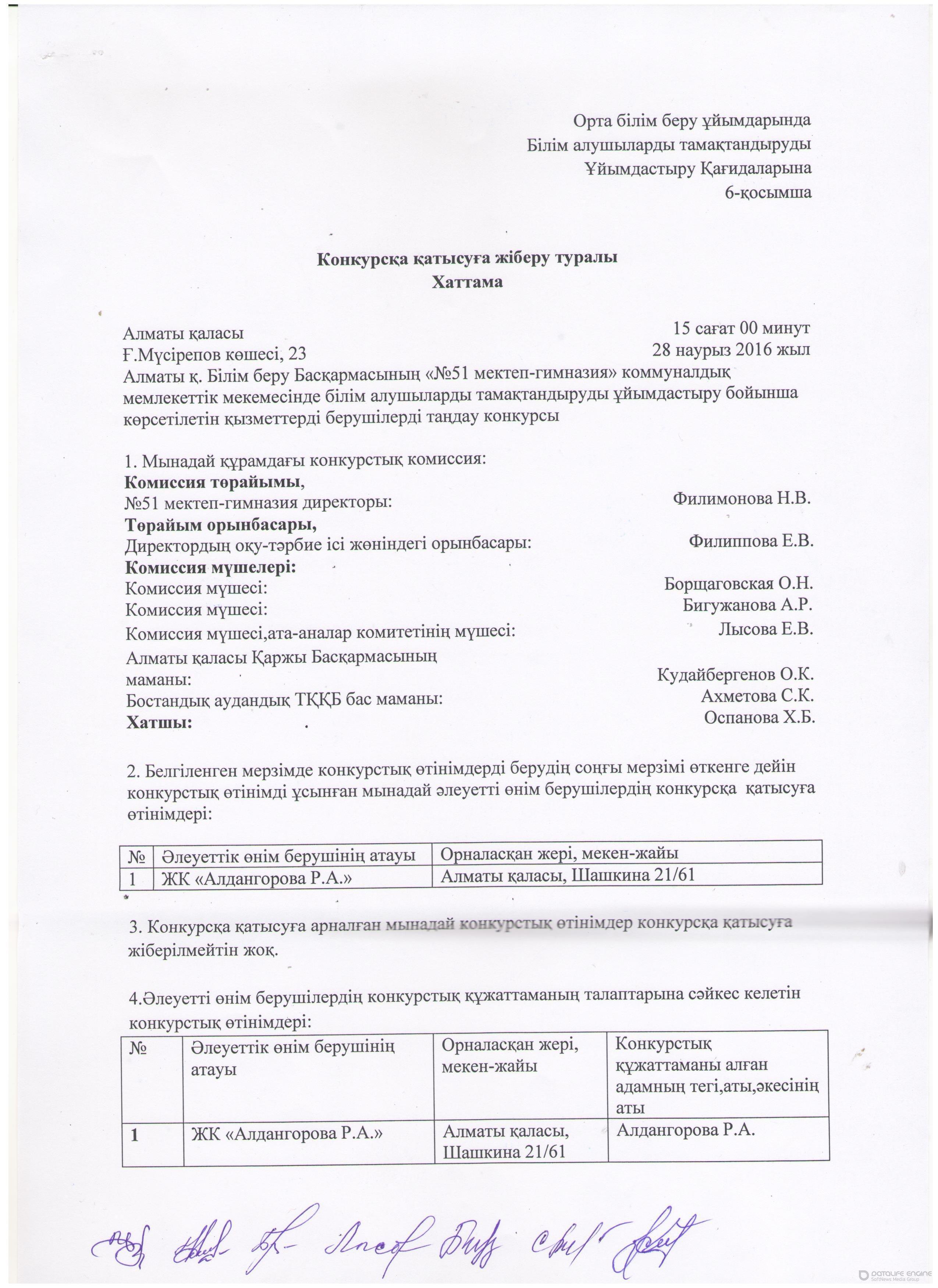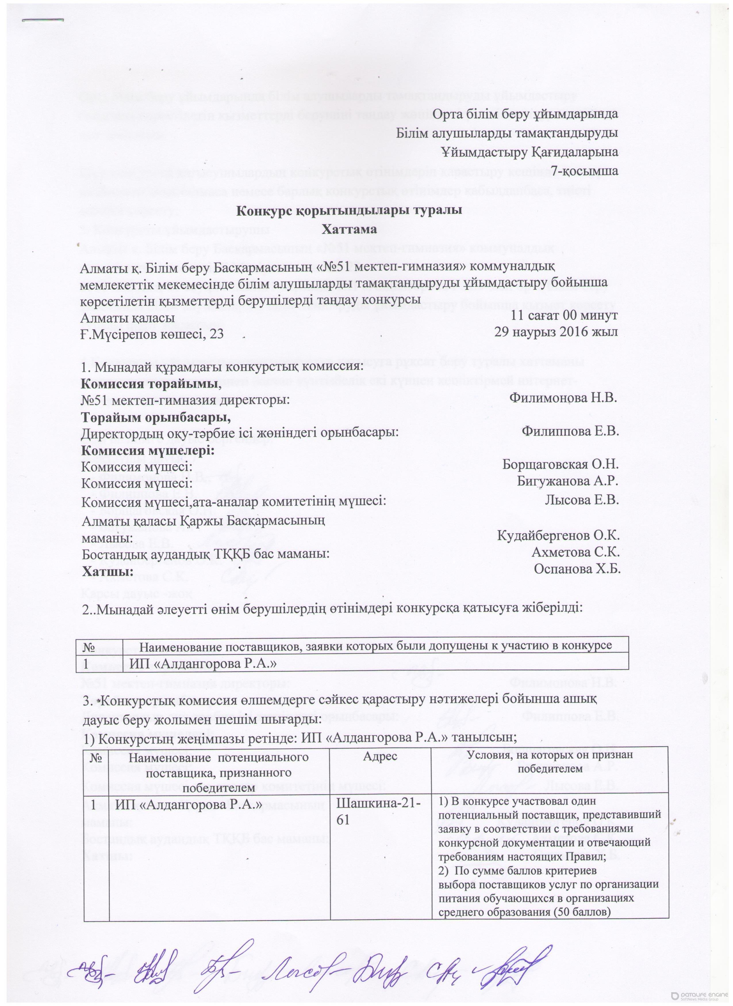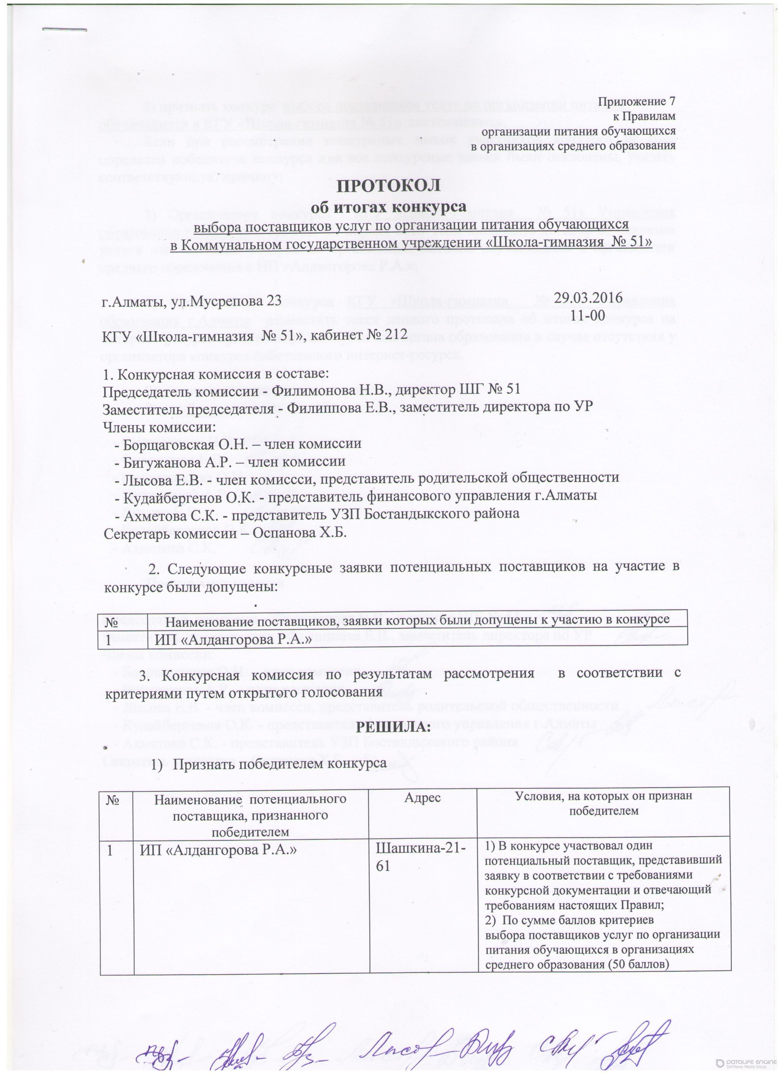 протокол итогов конкурса