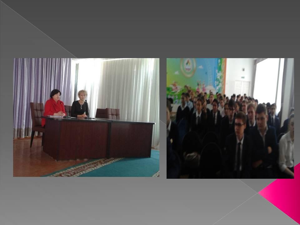 Оқушылар арасында сыбайлас жемқорлыққа қарсы және құқықтық мәдениетті қалыптастыру қажеттігі туралы және жоғары моральдық жауапты белсенді азамат және патриот қалыптастыру және дамыту үшін мектепте жағдай жасау қажеттілігі туралы айтты.