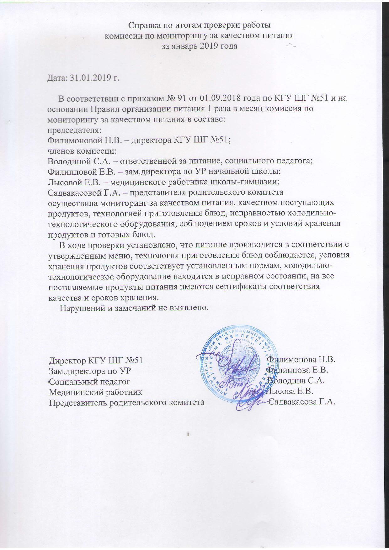 » Справка-мониторинг качества питания
